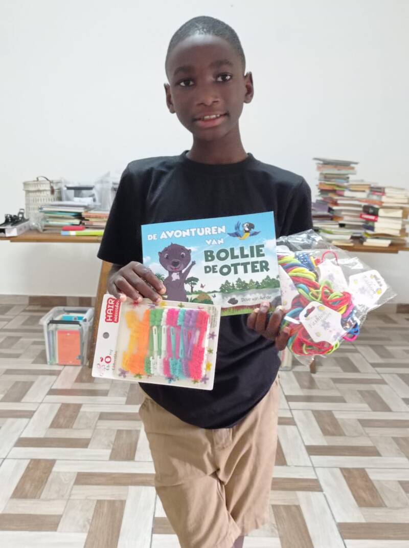 Zion behoort daarom óók tot één van mijn kleinkinderen. Zion de eigenaar van de Buurtbibliotheek, wordt bijgestaan door zijn mama Daveni en door mij.